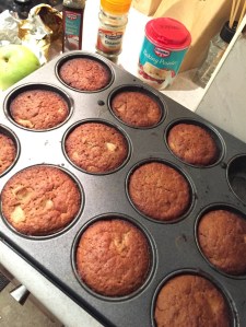 Pour out into a muffin tray and bake at 190c for about 30 minutes.