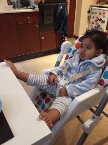 So the most he’s eaten today is a lovely fresh chicken burger I made from scratch, and because he’s little and needs some vegetables too, I grated them into the mix before cooking…
